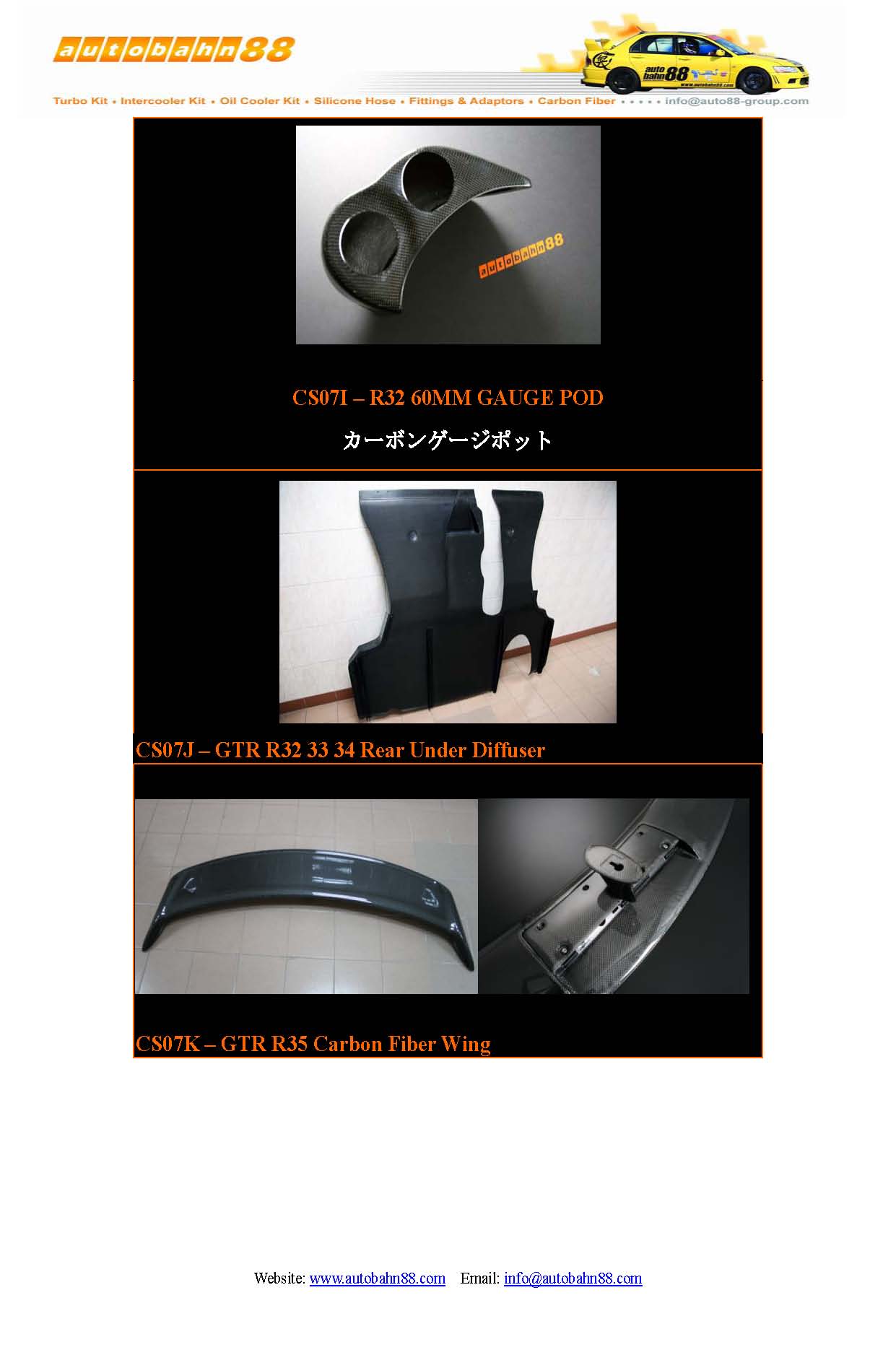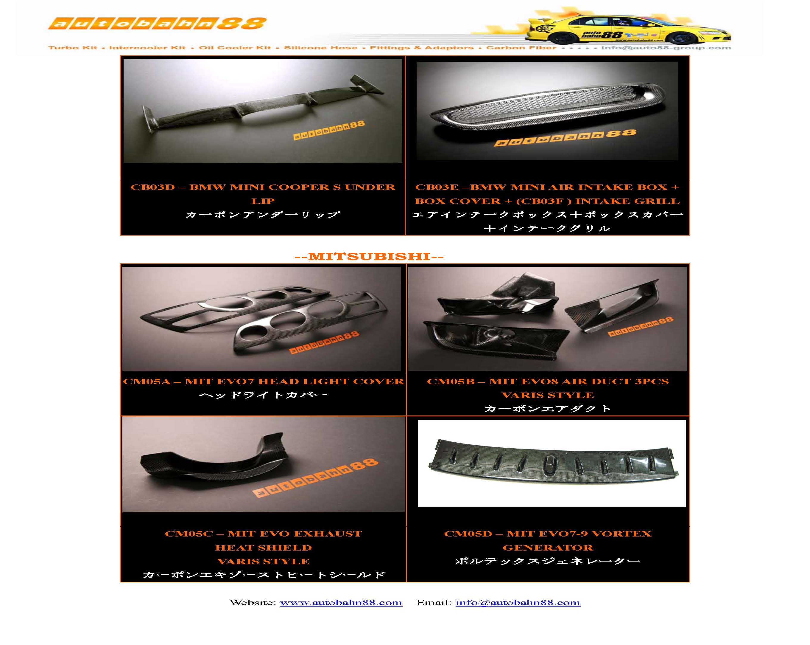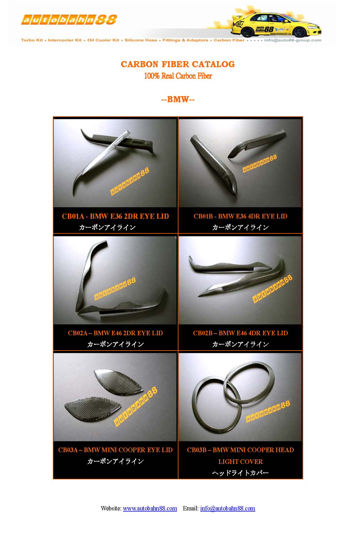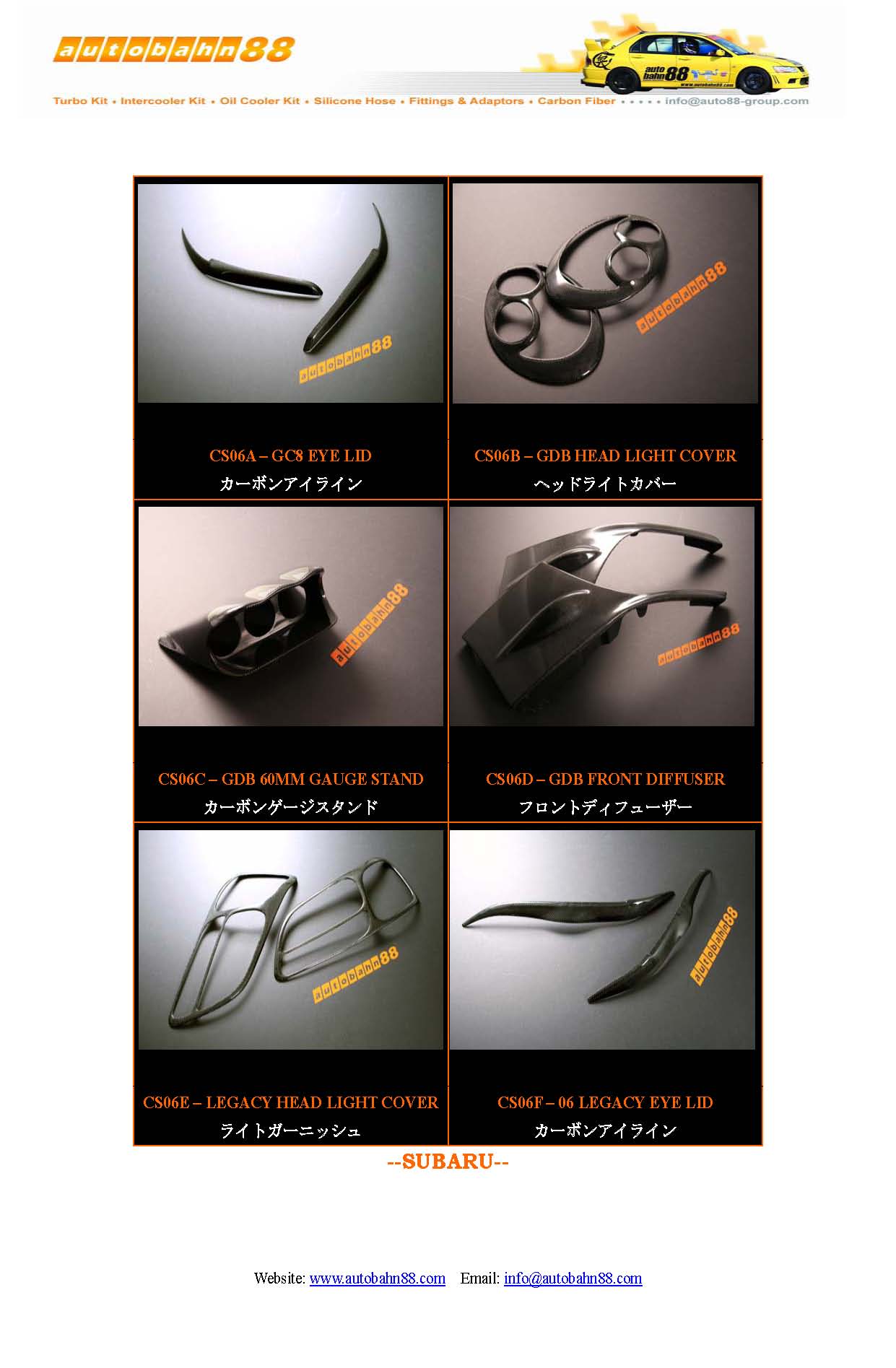 | AUTOBAHN88 Carbon Fiber Parts and Accessories Catalog Jan 2009 |