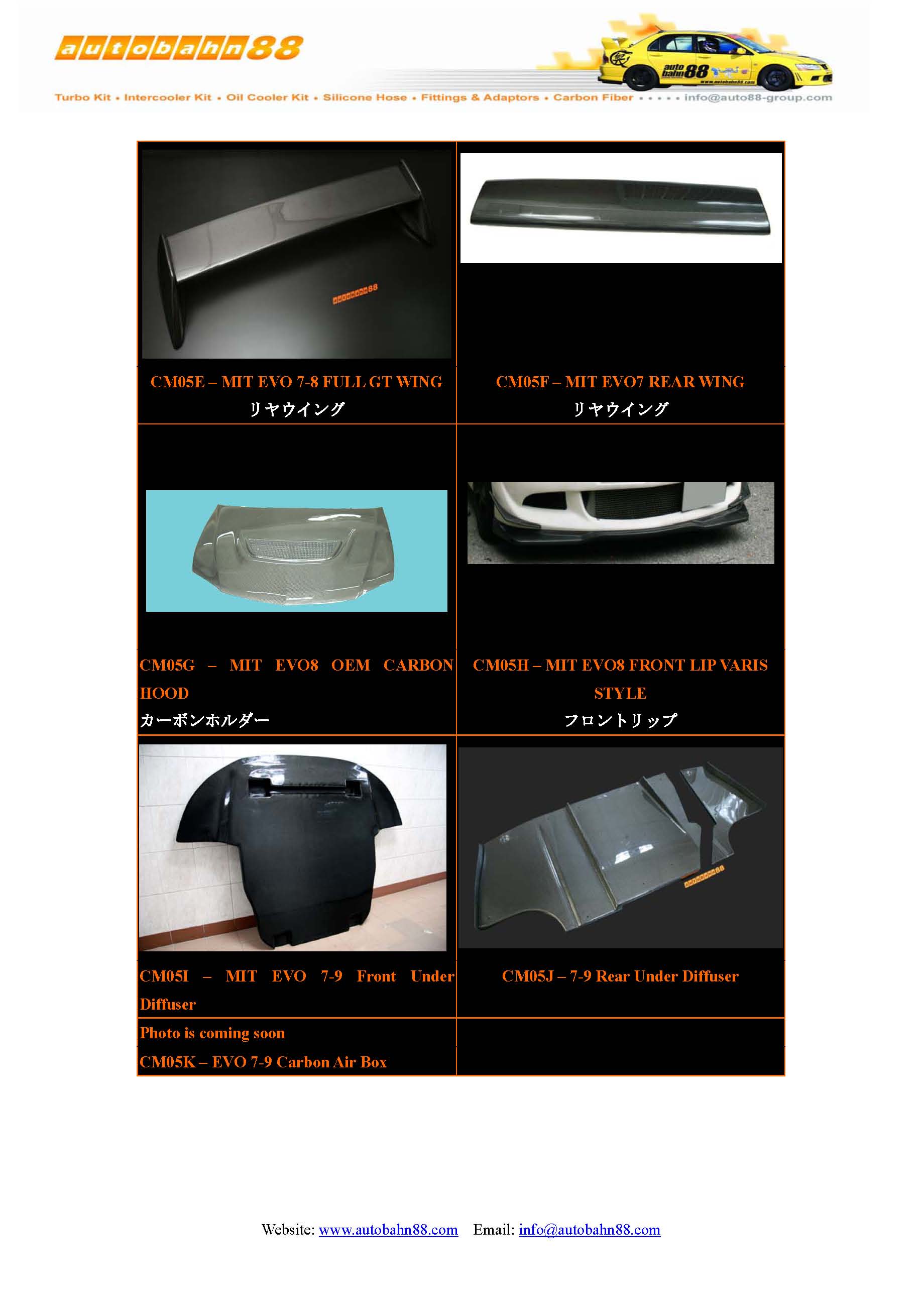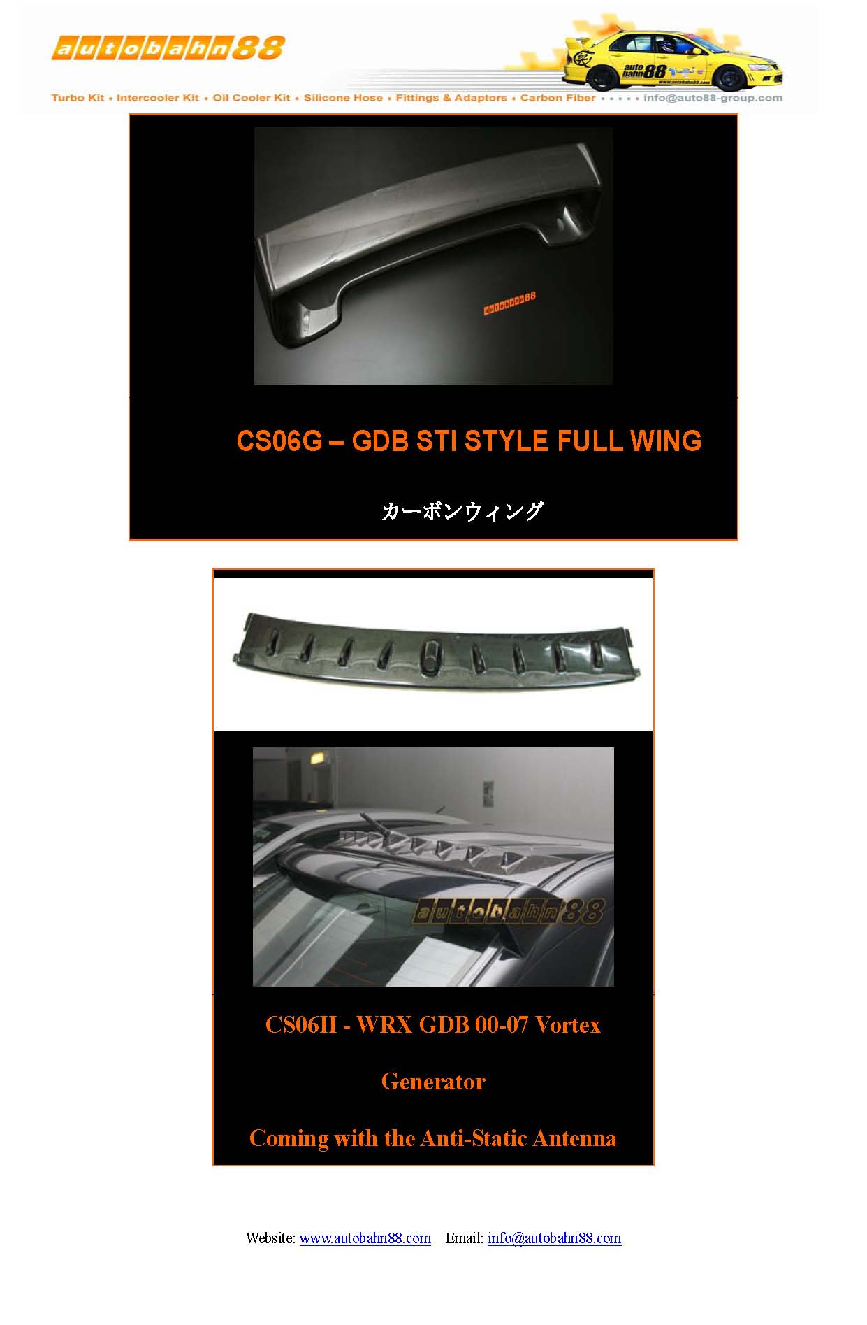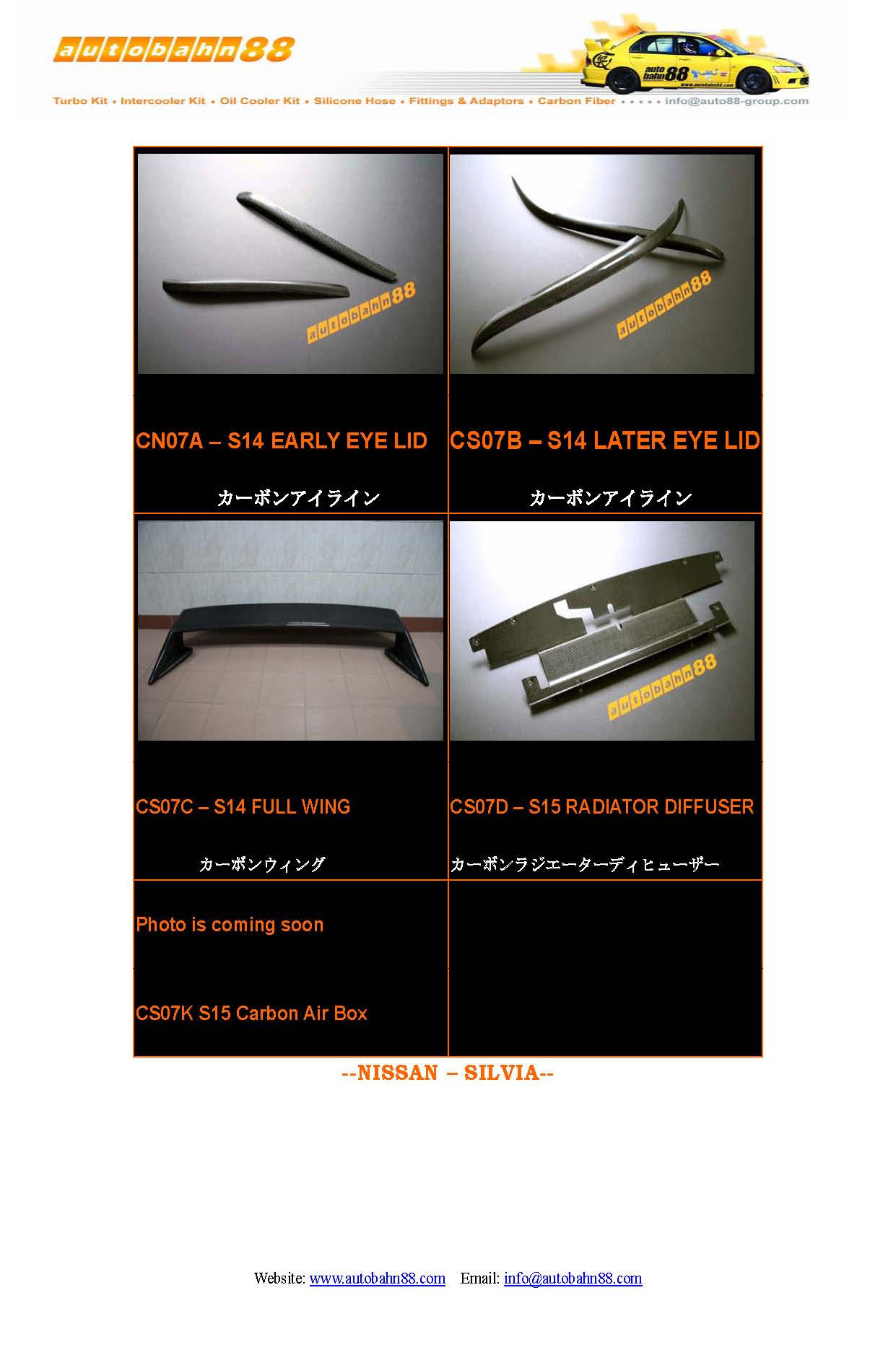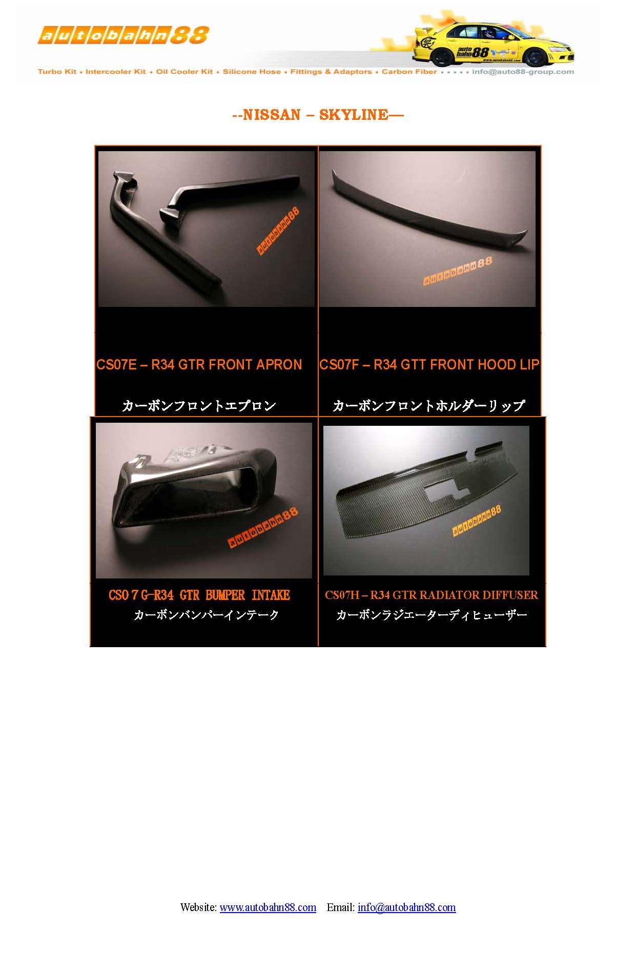 | AUTOBAHN88 Carbon Fiber Parts and Accessories Catalog Jan 2009 |